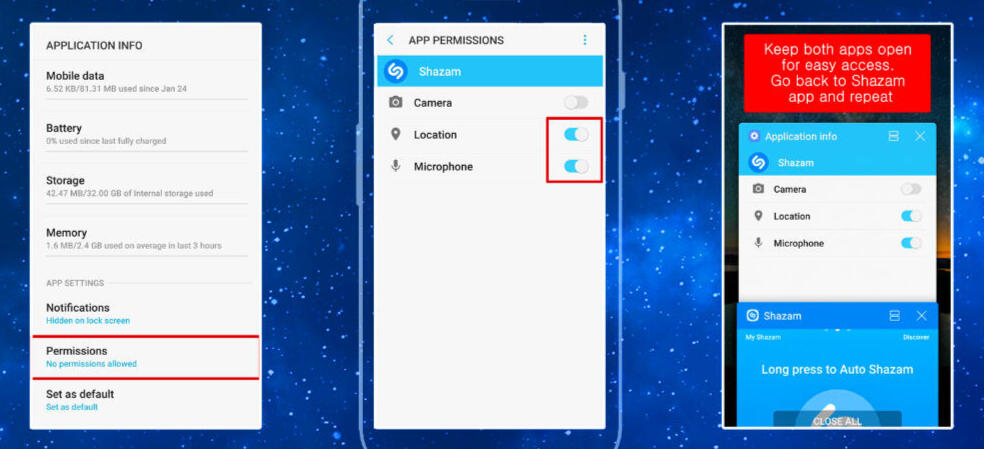 Although it's optional, we strongly encourage turning on the LOCATION permission for Shazam app as it will show your local music industry about GOT7's song popularity in your region.